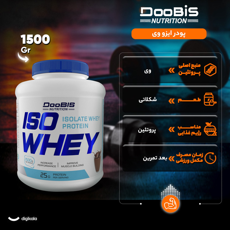 ایزو وی 1500 گرمی دوبیس، یک پروتئین وی ایزوله شده با درجه کیفیتی بسیار خالص و کیفیت بسیار بالا پودری بوده و سریعترین نوع جذب پروتئین وی بعد از تمرین برای رشد و حفظ عضلات و ماهیچههای بدن میباشد. این مکمل دارای اسید آمینههای شاخه دار (Bcaa) میباشد. این محصول برای عضله سازی و بهبود ریکاوری پس از تمرینات سخت بسیار مفید میباشد. این مکمل برای افراد مبتلابه بیماری عدم تحمل لاکتوز کاملا مناسب بوده، زیرا هگام پردازش ، لاکتوز آن حذف گردیده است. همچنین در فرمولاسیون این محصول، آنزیمهای لاکتاز و آمینوژن های موردنیاز بدن به منظور بهتر شدن عملکرد سیستم گوارش به کار رفته شده است تا همه افراد بتوانند از این مکمل استفاده نمایند. این محصول یک مکمل بی نظیر برای پیشگیری از تحلیل عضلات در دوران مسابقات ورزشی و تمرینات سخت بدنسازی میباشد و به بهبود عملکرد و کارایی ورزشکاران کمک خواهد کرد. این محصول دارای آمینواسیدهای شاخهدار میباشد که نقش بسزایی در تقویت توده و حجم عضلانی دارند و همچنین چربی سوزی را در بدن سرعت میبخشند. این مکمل مناسب برای افزایش حجم عضلانی خشک میباشد و با ترکیبات فوقالعاده به شما کمک میکند. با مصرف این مکمل میتوانید به آسانی توده و حجم عضلات خود را افزایش داده و برای افزایش و یا کاهش وزن نیز از این مکمل استفاده نمایید. در فرمولاسیون این مکمل تنها 0.5گرم چربی در هر وعده وجود داشته و بدون شکر میباشد. همچنین حاوی پروتئین ویتامین A و C و مینرالهای آهن و کلسیم میباشد که برای حفظ سلامتی بسیار اهمیت دارند. ویتامین C یک آنتیاکسیدان قوی میباشد که باعث میشود در طول تمرینات سنگین از استرس اکسیداتیو در بدن جلوگیری شود و رادیکالهای مضر آسیب رسان را از بین خواهد برد. ویتامین A نیز موجب حفظ سلامت بینایی شده و همچنین برای تقویت سیستم ایمنی بسیار اهمیت دارد و با عفونتهای بدن مقابله خواهد کرد. کلسیم یک مینرال ضروری برای حفظ سلامت استخوانها و دندان میباشد که خصوصاً در سنین بالا بسیار اهمیت فراوانی خواهد داشت. آهن موجود در این محصول، برای خونسازی اهمیت زیادی داشته و باعث افزایش خونرسانی به اعضاء بدن و عملکرد بهتر آنها در هنگام تمرینات خواهد شد.