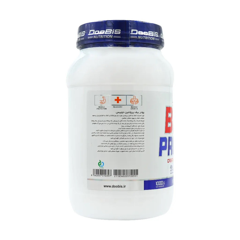 پودر بیف پروتئین دوبیس حاوی پروتئین گوشت گاو خالص به همراه کراتین و ال گلوتامین بوده که با هدف تامین پروتئین مورد نیاز ورزشکاران و افرادی که به دنبال افزایش وزن یا حجم عضلانی هستند، طراحی شده است. این محصول فاقد لبنیات است و به طور ویژه برای کسانی که نمیخواهند از پروتئین وی یا سایر منابع لبنی استفاده کنند، مناسب است. با مصرف این مکمل، افزایش توان بدنی، عضله سازی، افزایش حجم، تسریع روند ریکاوری و ترمیم بافتها و کمک به روند چربی سوزی را شاهد خواهید بود. در این محصول به جای شکر از سوکرالوز استفاده شده است و افراد دیابتی به راحتی میتوانند استفاده کنند و از فواید آن بهره مند شوند. در این محصول، علاوه بر پروتئین از ترکیبات دیگری مانند کراتین، گلوتامین و ویتامین E و ویتامین C استفاده شده است. گلوتامین موجود در این محصول، به پشتیبانی از عضلات پرداخته و و از تحلیل عضلانی جلوگیری و به تسریع ریکاوری کمک میکند. از آن سو وجود ویتامینهایی مانند ویتامین سی و ای با خاصیت آنتی اکسیدانی از سیستم ایمنی شما حمایت میکند. یکی دیگر از ترکیبات موجود در این مکمل، ویتامین ب1 بوده که تاثیر بسزایی در تامین انرژی و سوخت و ساز بهتر پروتئینها و کربوهیدراتها و چربی دارد. این ویتامین همچنین به هضم و جذب بهتر پروتئین بیف دوبیس در بدن کمک میکند. در کنار این مکمل، جهت افزایش تمرکز، انرژی و پمپاژ خون در حین تمرین، خرید مکمل پمپ و استفاده از آن پیش از ورزش میتواند اثربخشی تمرین را بالا ببرد.