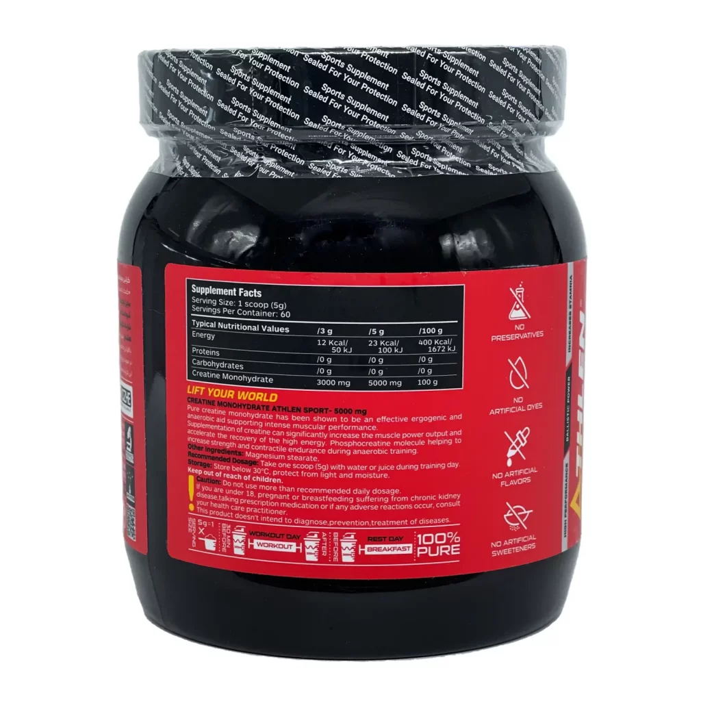 کراتین منوهیدرات اتلن حاوی 300 گرم کراتین منوهیدرات خالص و بدون طعم میباشد که برای کمک به افزایش قدرت و استقامت ورزشکاران بسیار مفید میباشد.