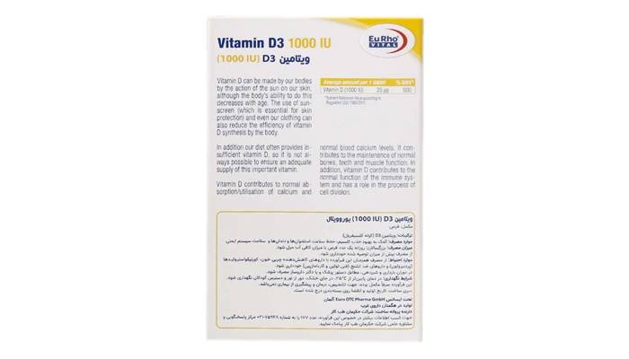 توضیحات قرص ویتامین D3-1000 واحدی یوروویتال بسته 60 عددی