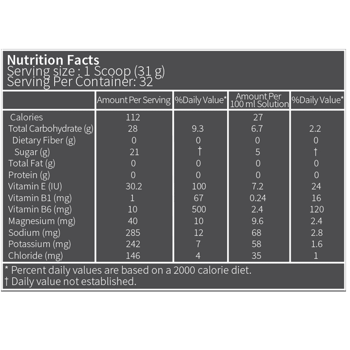 حاوی ویتامین های B1، B6، E و املاح سدیم، منیزیم، پتاسیم و کلر