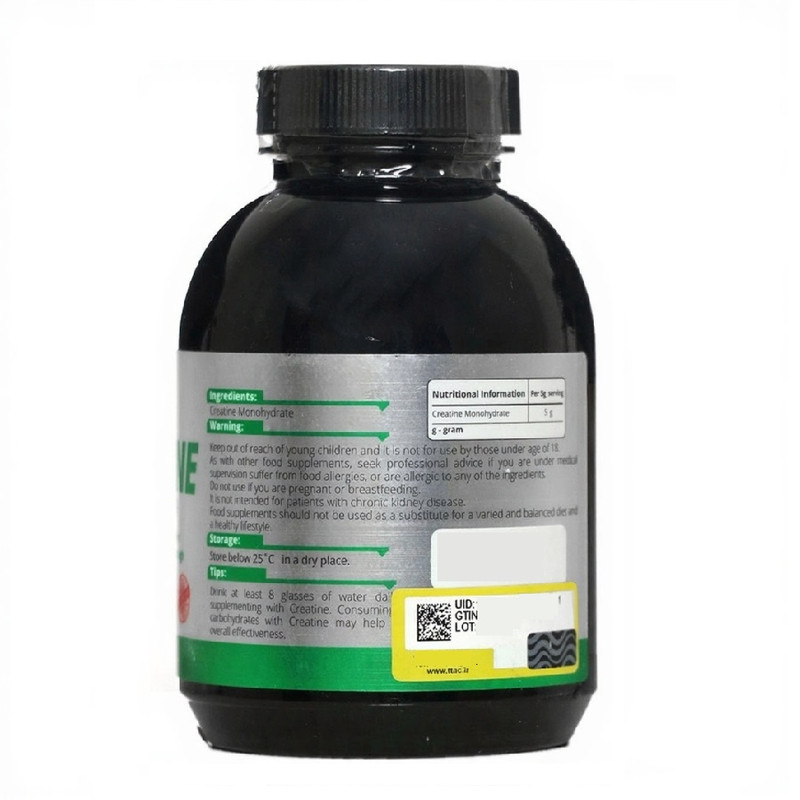 | سایر توضیحات | کراتین دو کاربرد اصلی دارد: افزایش توان عضلانی و افزایش حجم عضلات. این دو کاربرد منتهی به داشتن کیفیت تمرینی بالا در ورزشکار خواهد بود. حدود ۹۵ درصد کراتین به صورت فوسفوکراتین در عضلات بدن ذخیره میشود و ۵ درصد دیگر در کبد، کلیه و مغز ذخیره میشوند. سه اسید آمینه آرژینین، متیونین و گلایسین وظیفه ساخت کراتین بدن را به صورت طبیعی برعهده دارند اما برای ورزشکاران بدنسازی ممکن است کفایت نکند. به همین دلیل برند ویوا پاور کراتین مخصوص خود را وارد بازار کرده تا پاسخگوی نیاز بدنسازان باشد. |